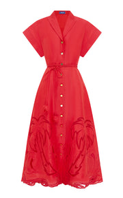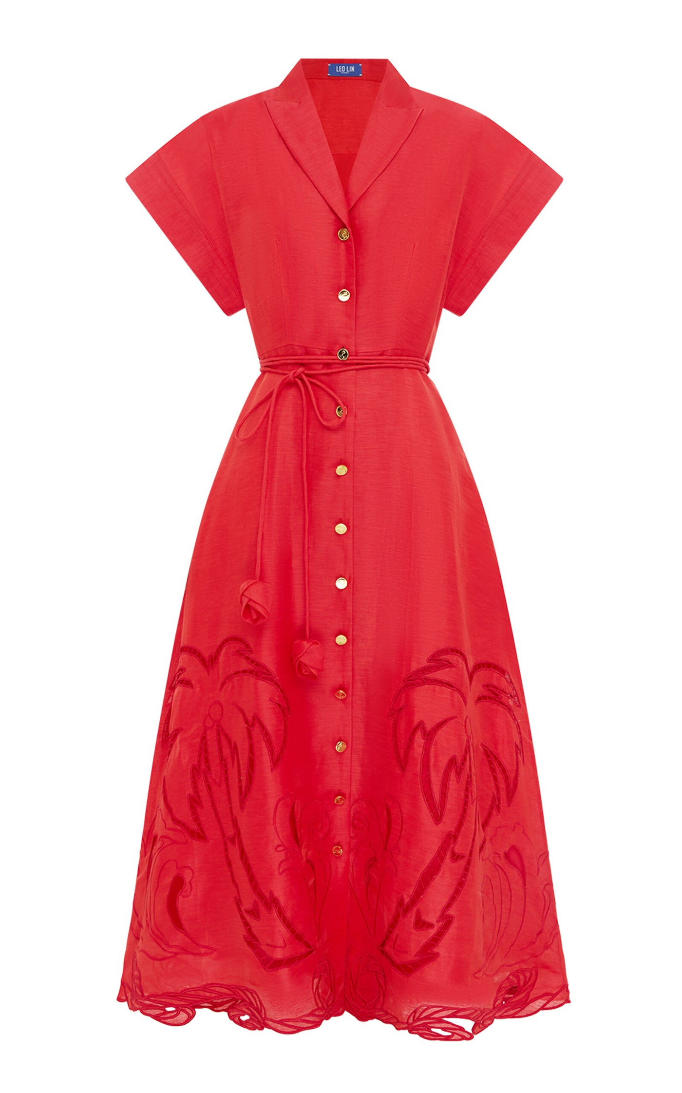 Appliquéd Linen-Blend Shirt Midi Dress Full of charm simple and atmospheric