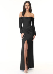Black Off-Shoulder Long Sleeve Maxi Dress with Back Cutout Sheath Off-The-Shoulder Long Sleeve Stretch Satin Convertible Bridesmaid Dresses black tie events, formal weddings, and upscale parties