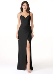 Black Spaghetti Strap Maxi Dress with Side Slit Mermaid V-Neck Pleated Chiffon Dress Bridesmaid Dresses