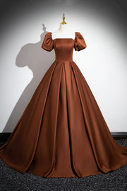 Brown Satin Long A-Line Prom Dress Off the Shoulder Evening Party Dress simple gentle atmospheric and unique desi Bring summer colors to enhance white - US 2 / UK 6 / EU 32