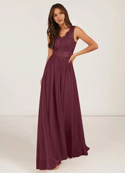 Burgundy Lace V-Neck Maxi Dress with Bow Back Cabernet A-Line Chiffon Dress Bridesmaid Dresses