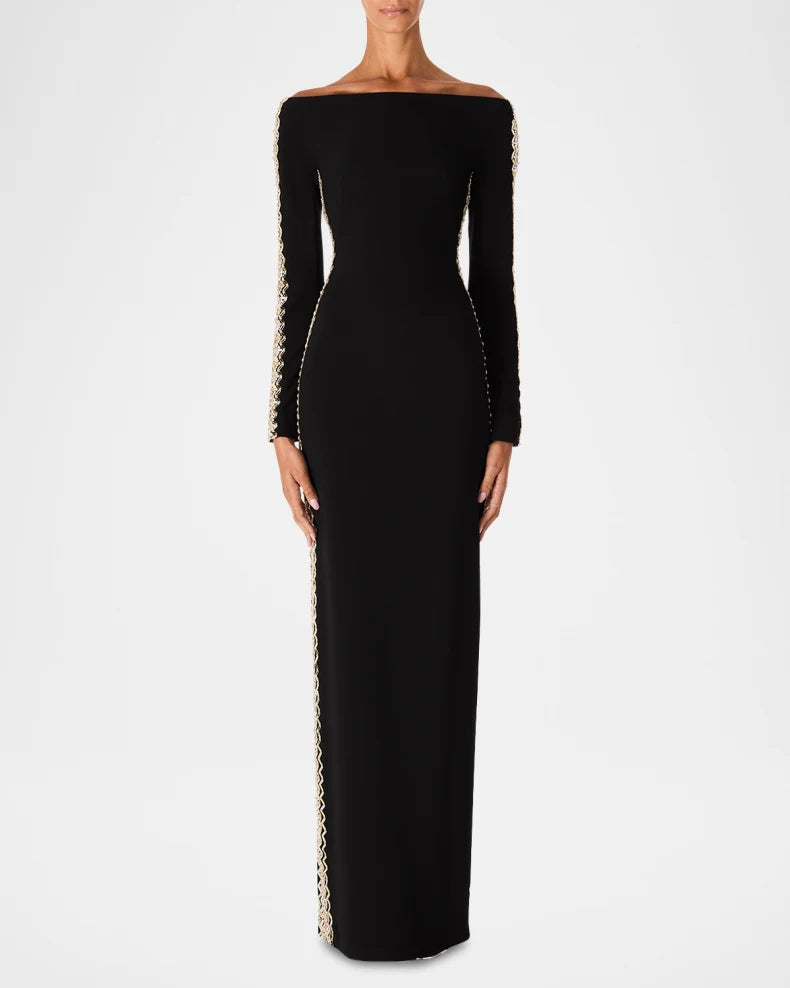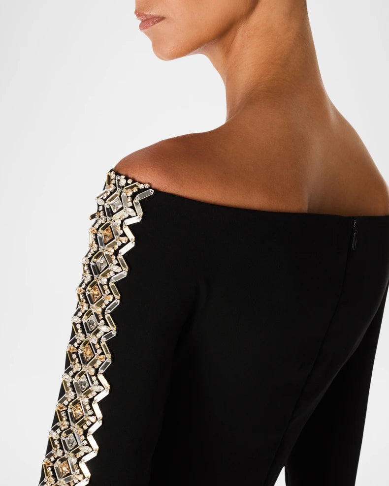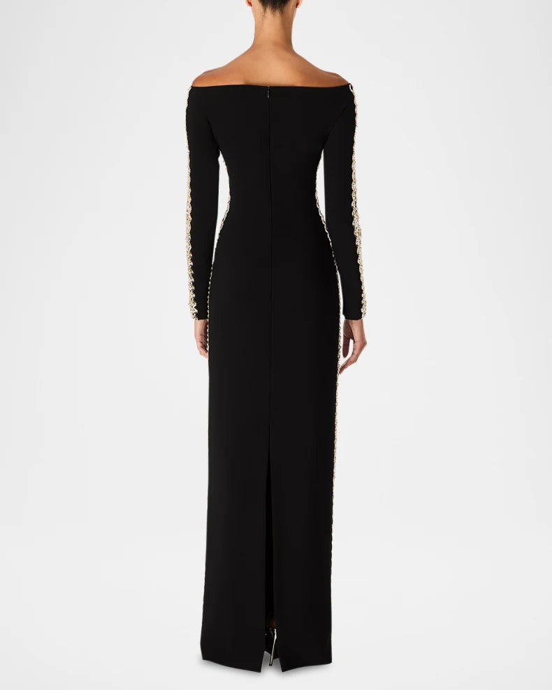 Charisma Crystal Off-The-Shoulder Long-Sleeve Gown Charming and unique design Beautiful