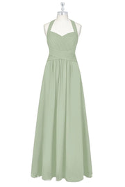 Chiffon Halter A-Line Long Maid of Honor Dress Gentle beautiful and generous