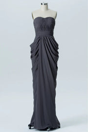 Chiffon Strapless Sheath Long Bridesmaid Dress Gentle beautiful and generous