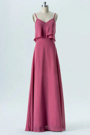 Chiffon Straps Ruffled Bridesmaid Dress Gentle beautiful and generous