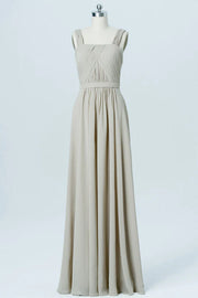 Chiffon Wide Straps Banded Waist Bridesmaid Dress