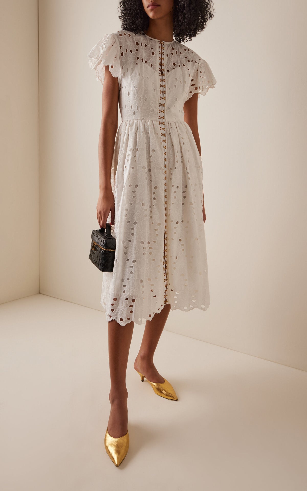 Cotton-Lace Drop-Waist Midi Dress Full of charm simple and atmospheric