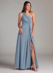 Dusty Blue A-Line One Shoulder Chiffon Dress simple gentle atmospheric and unique desi Bring summer colors to enhance white  - US 2 / UK 6 / EU 32