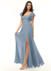 Dusty Blue A-Line Ruffled Chiffon Dress simple gentle atmospheric and unique desi Bring summer colors to enhance white