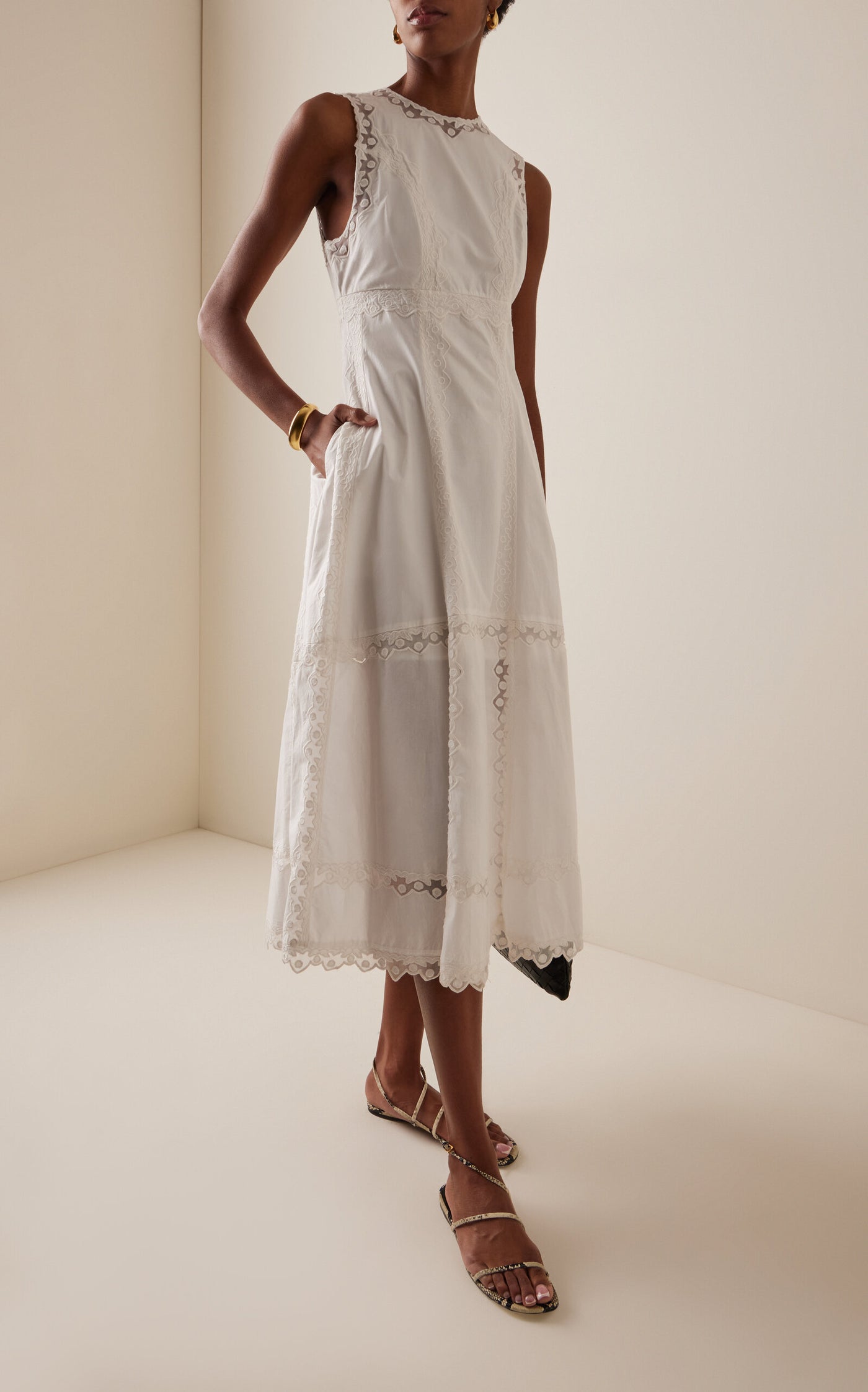 Embroidered Cotton Midi Dress Full of charm simple and atmospheric - US 2 / UK 6 / EU 32