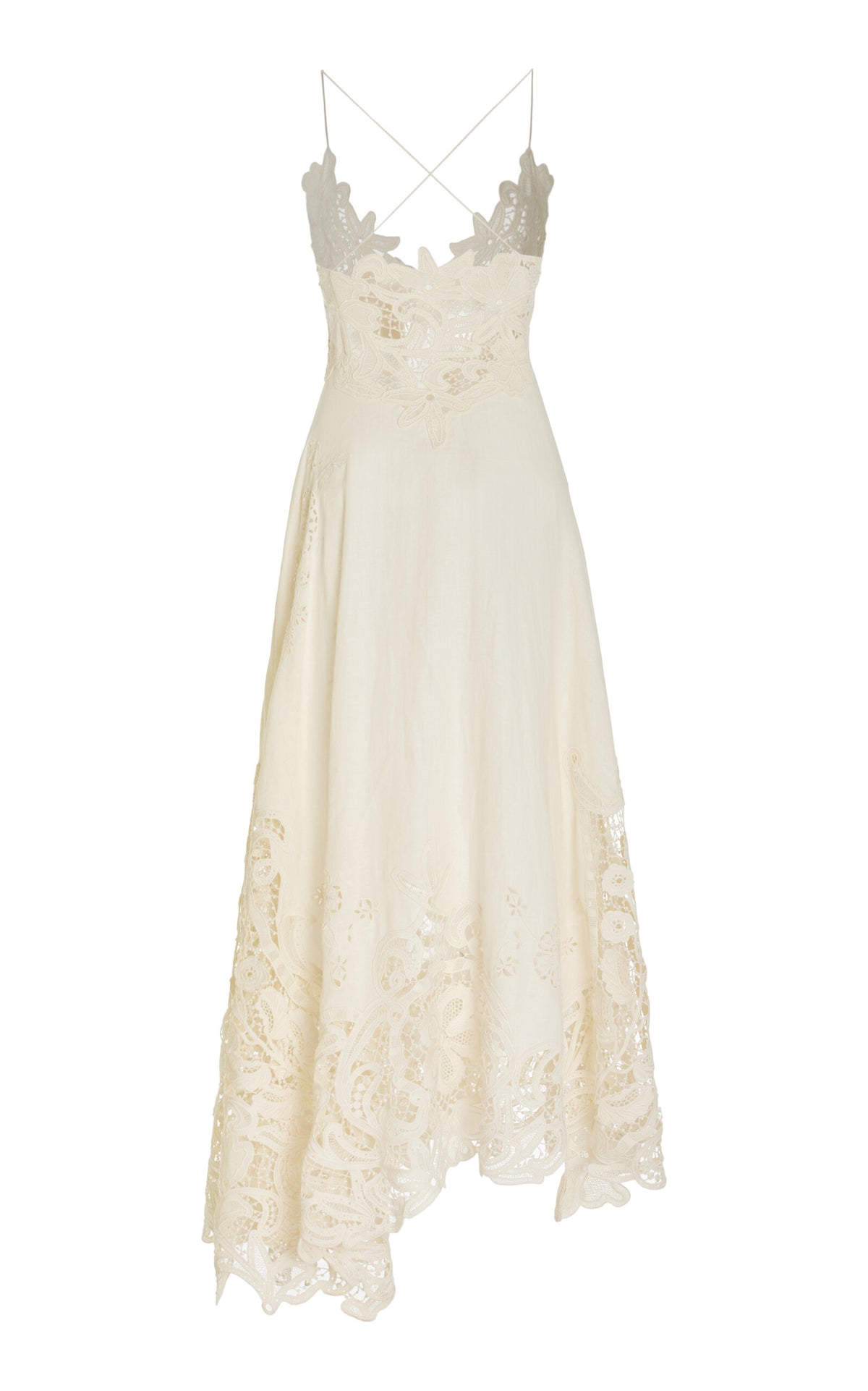 Embroidered Linen Midi Dress Full of charm simple and atmospheric - US 2 / UK 6 / EU 32