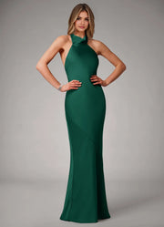 Emerald Green Halter Neck Satin Maxi Dress Emerald Mermaid Stretch Satin Dress Bridesmaid Dresses tie events, formal weddings, and upscale parties