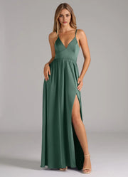 Elevate your elegance with this Emerald Green Lace-Up Back Spaghetti Strap Maxi Dress. The delicate spaghetti straps, lace-up back detail, and side slit create a graceful and alluring look. Perfect for formal events, weddings, or any occasion to showcase refined charm.