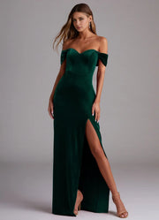 Emerald Green Velvet Off-Shoulder Maxi Dress with Side Slit Emerald Sheath Off the Shoulder Velvet Convertible Dress Bridesmaid Dresses