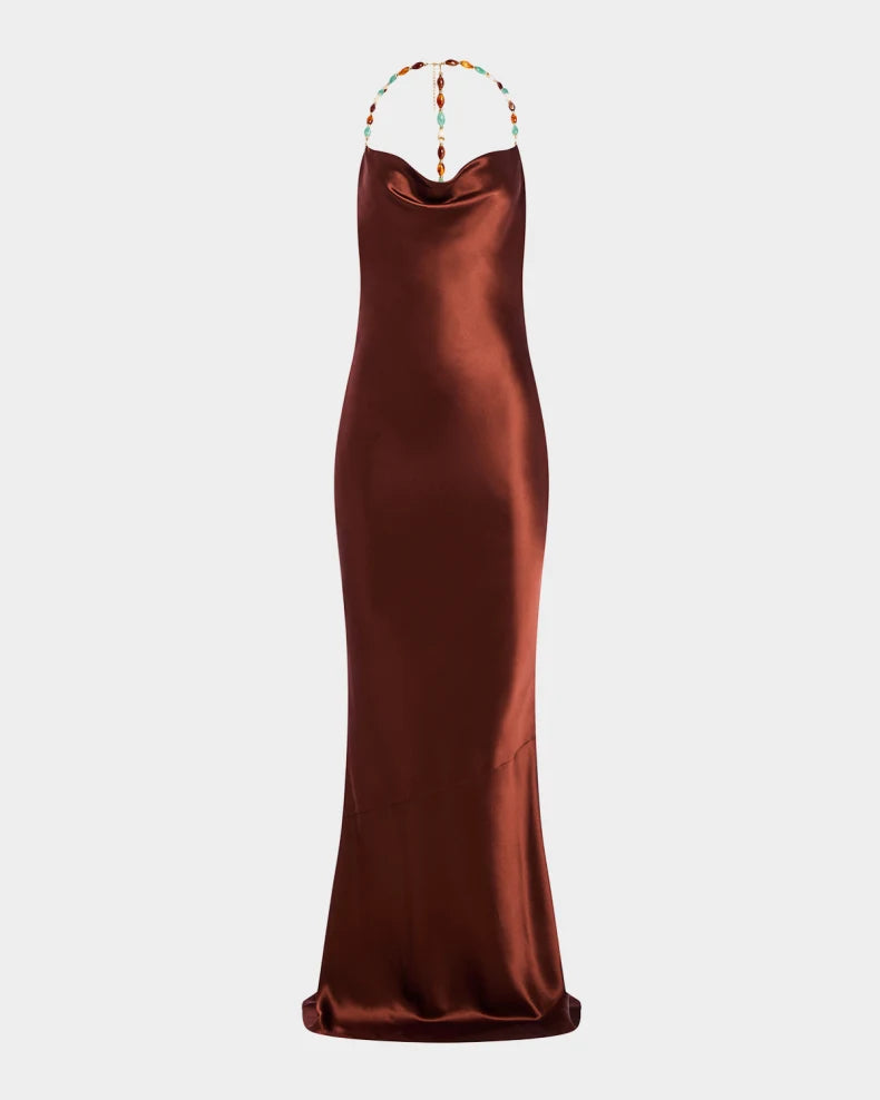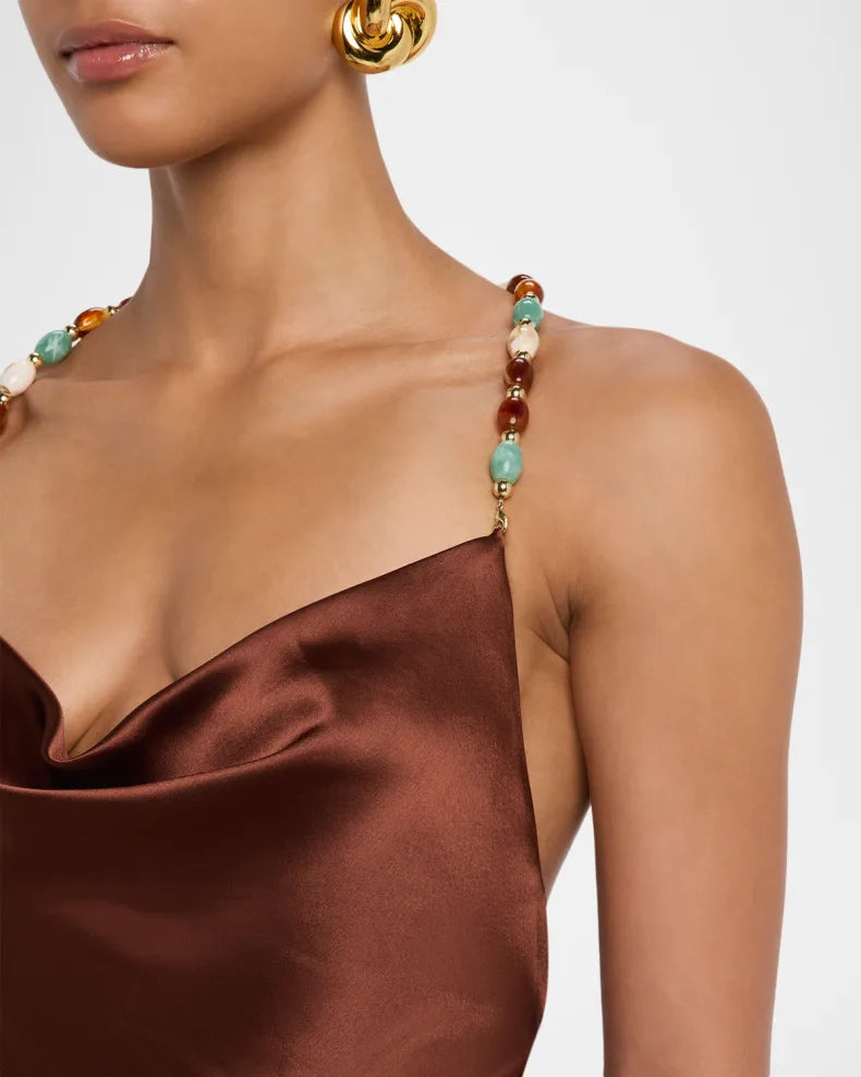 Finley Beaded Satin Slip Gown Charming and unique design Beautiful generous simple