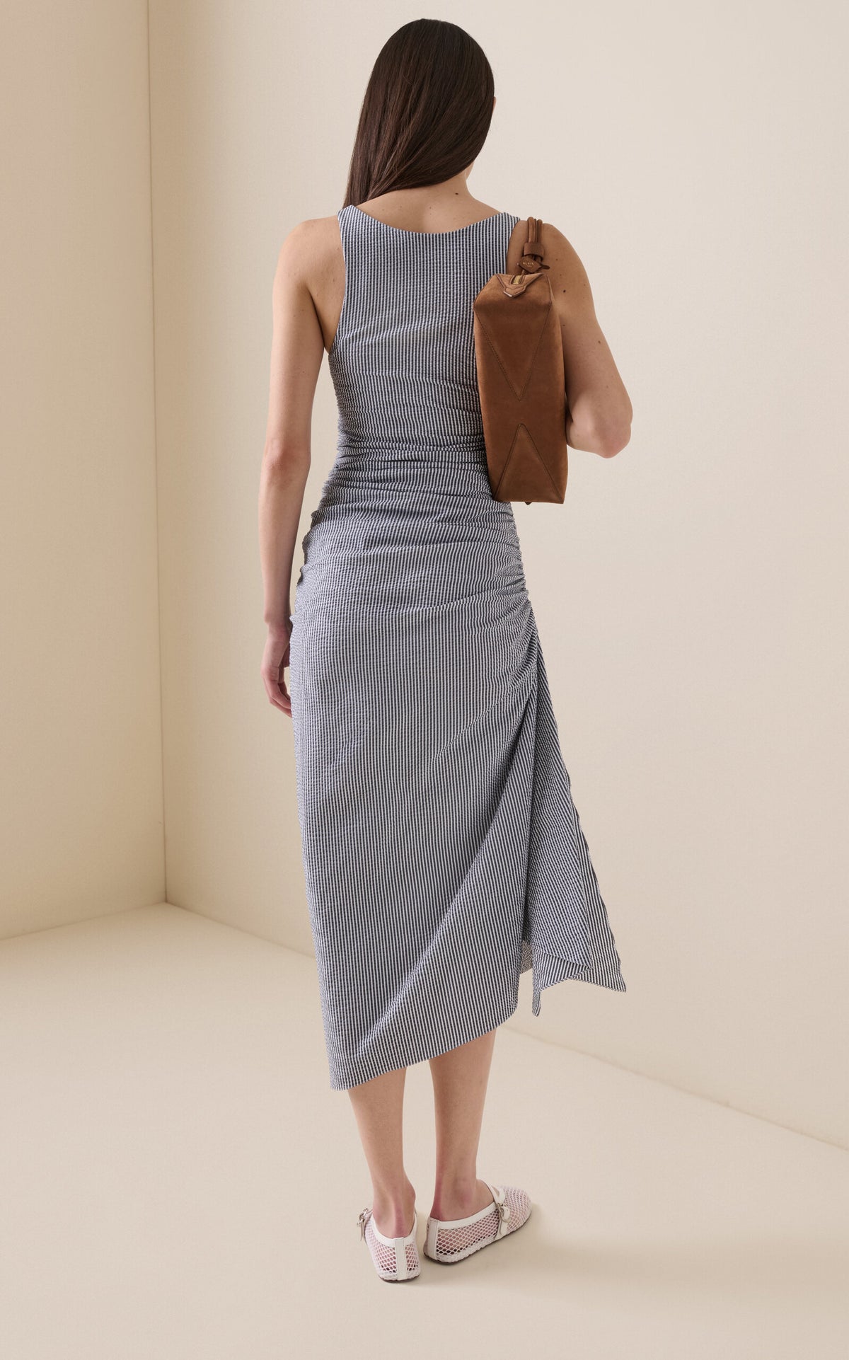 Gathered Striped-Seersucker Midi Dress Full of charm simple and atmospheric