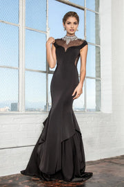 Shine at prom with this sleek black mermaid dress—featuring a sweetheart neckline, cap sleeves, and crystal-embellished sheer back. The ruffled skirt adds drama, balancing elegance and allure, perfect for prom, formal dances, or evening galas. Pair with diamond accessories to elevate its luxe vibe.