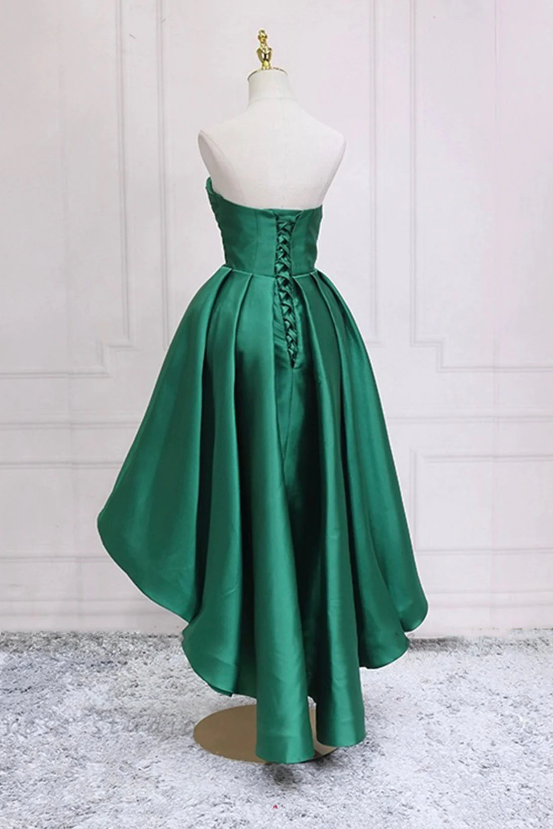 Green Satin High Low Prom Dress Cute Sweetheart Neck Evening Party Dress simple gentle atmospheric and unique desi Bring summer colors to enhance white