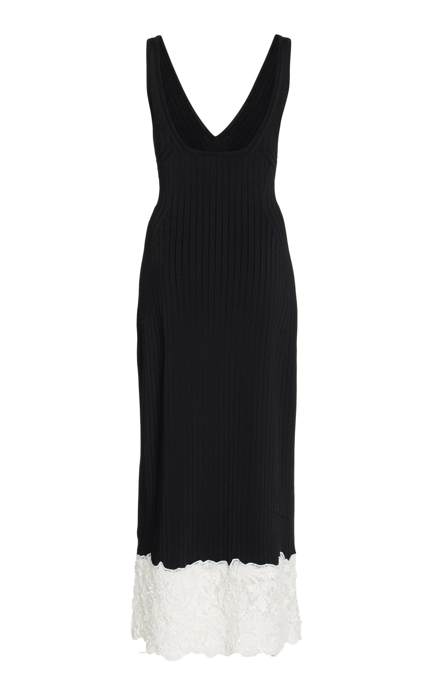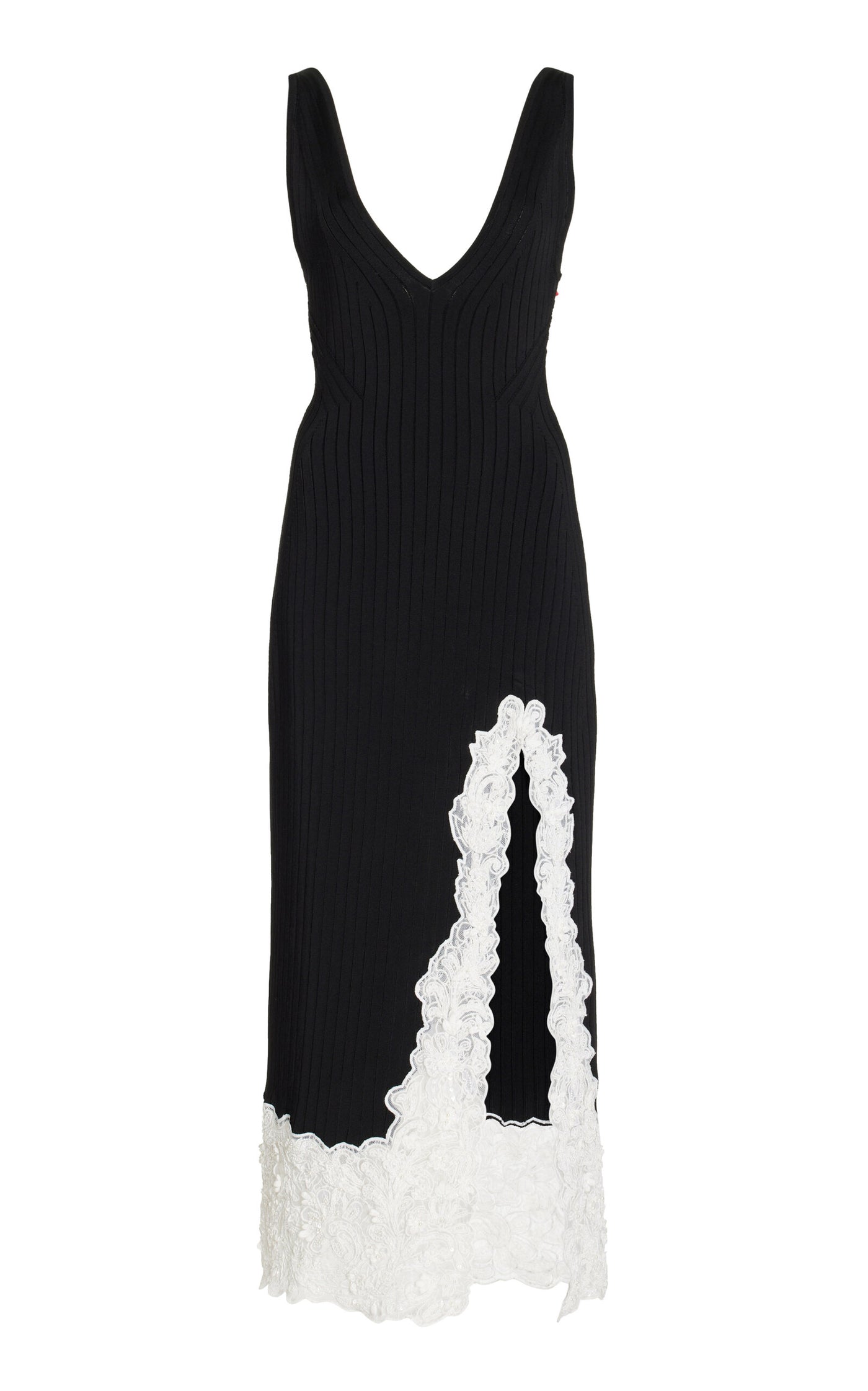 Lace-Trimmed Knit Midi Dress Full of charm simple and atmospheric