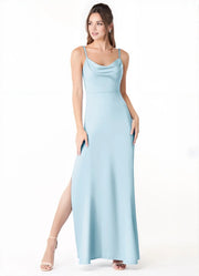 Light Blue Satin Cowl Neck Maxi Dress with Side Slit Sky Blue Mermaid Side Slit Stretch Satin Dress Bridesmaid Dresses