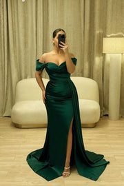Long Mermaid Dark Green Satin Bridesmaid Dresses