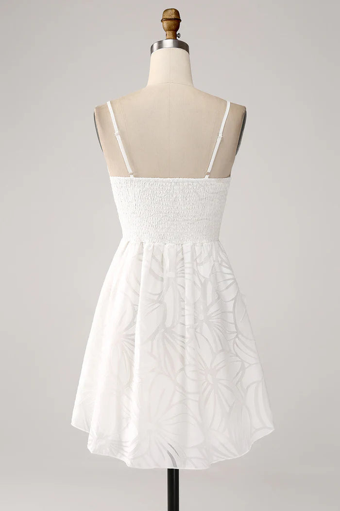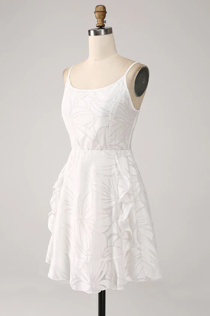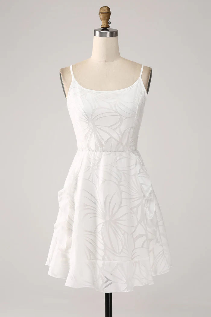 Modest White A-Line Spaghetti Straps Short Graduation Dress