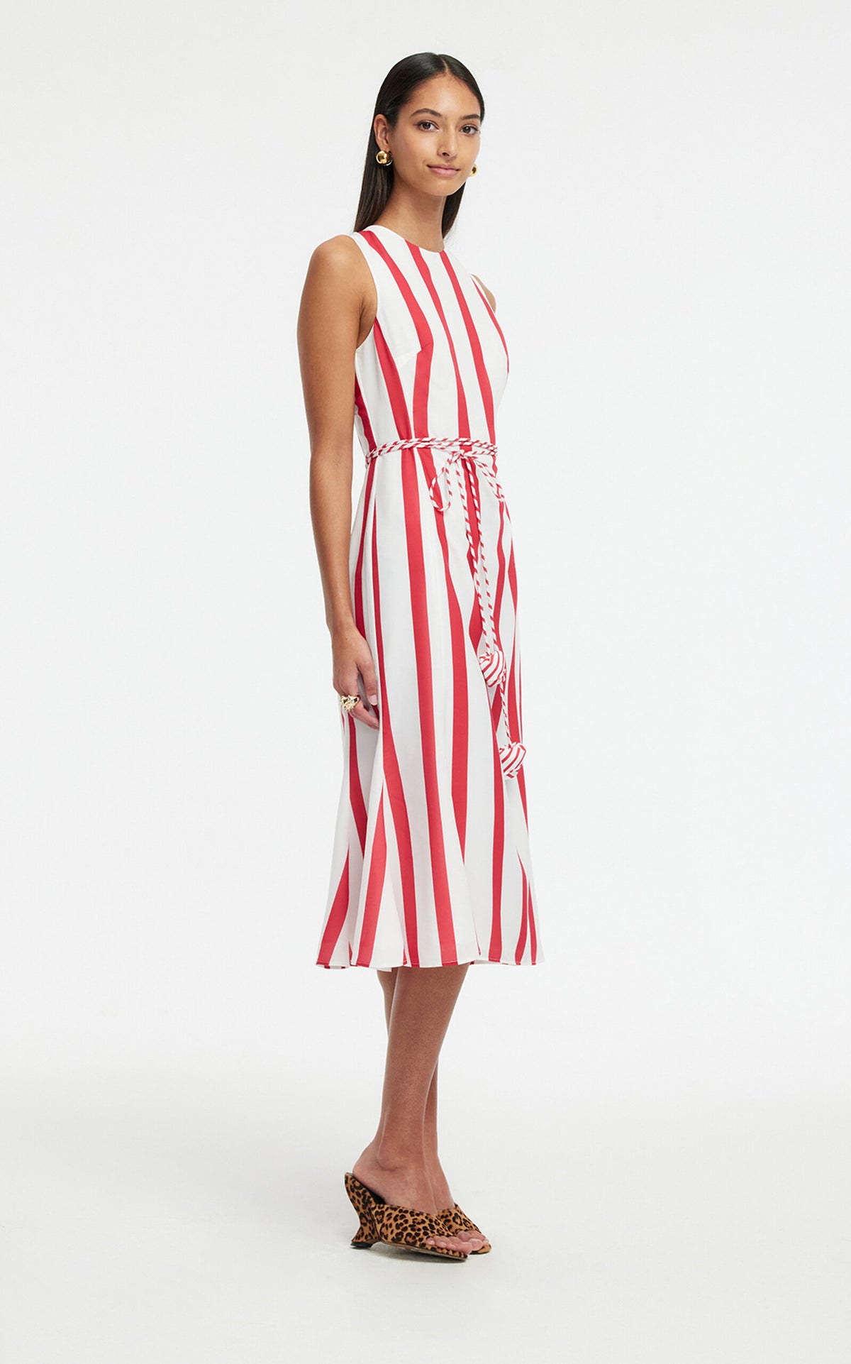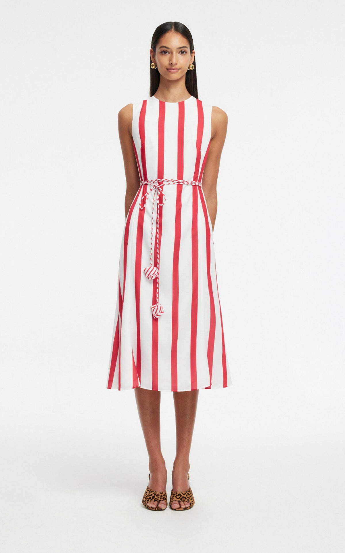 Olive Striped Midi Dress Full of charm simple and atmospheric
