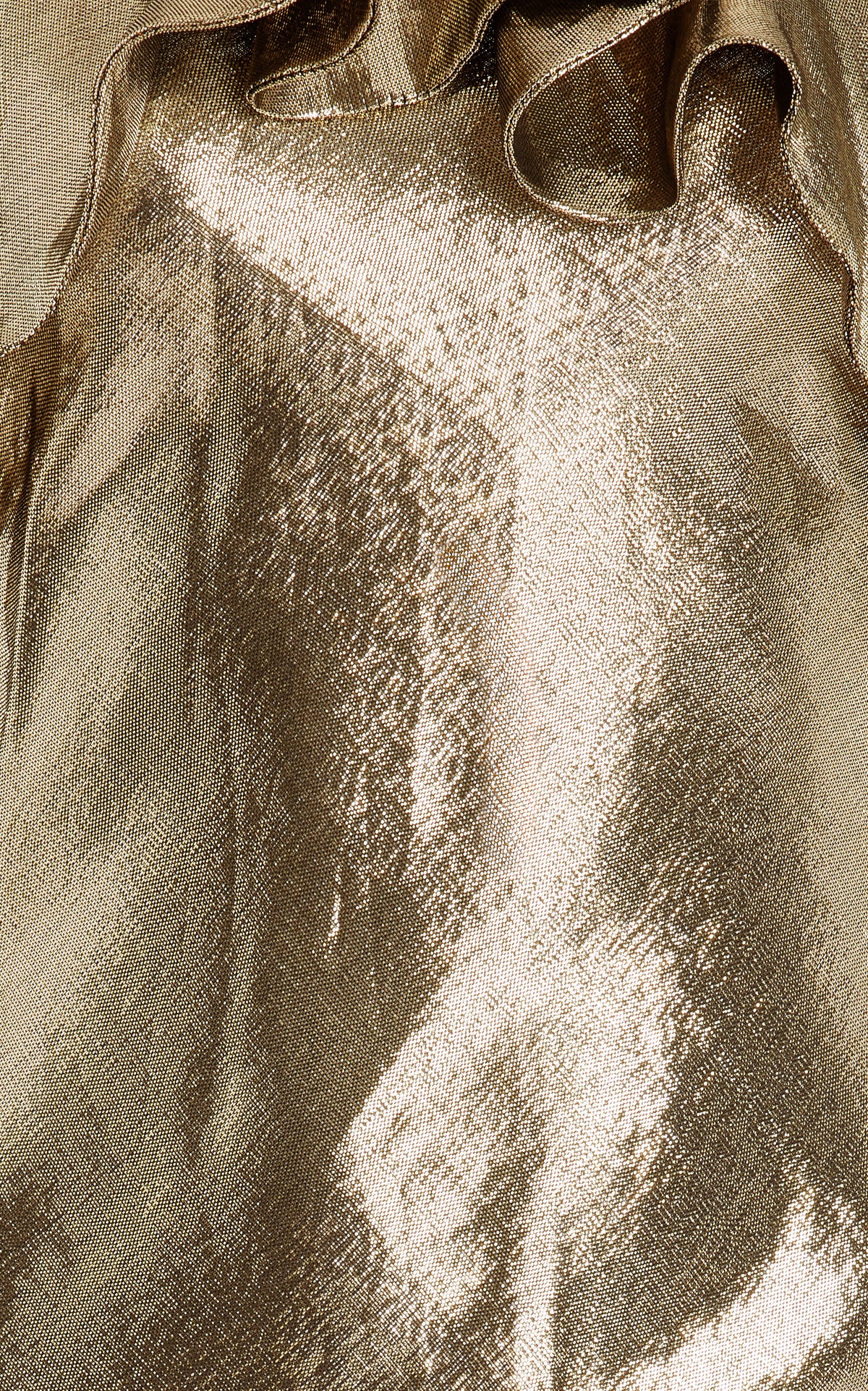 Party Dresses Ruffled Gold Lamé Halter Gown Gentle beautiful and grand - US 2 / UK 6 / EU 32