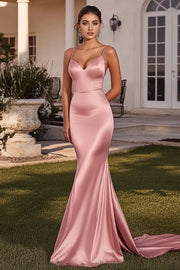 Pink Mermaid Spaghetti Straps Satin Long Prom Dress simple gentle atmospheric and unique desi Bring summer colors to enhance whiteness