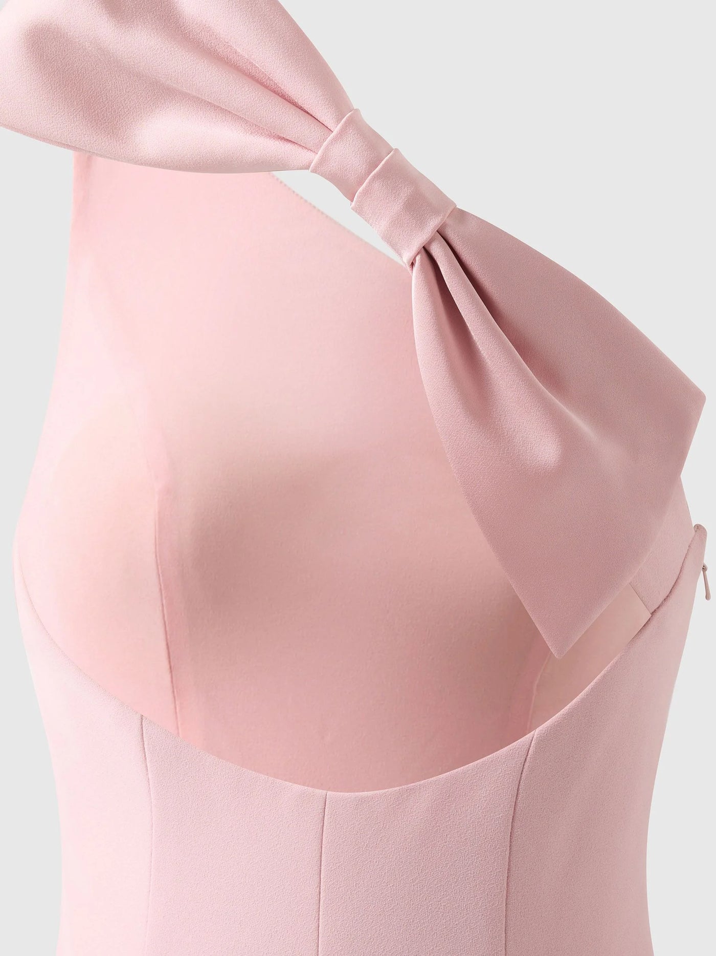 Pink One-Shoulder Bow Maxi Dress Straight bridesmaid dress in crepe Mother of the Bride Dresses black tie events, formal weddings, and upscale parties
