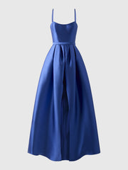 Royal Blue Satin Spaghetti Strap Maxi Dress with Front Slit Princess style bridesmaid dress with boat neckline in mikado Bridesmaid Dresses black tie events, formal weddings, and upscale parties