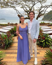 Spaghetti Long A-line Purple Chiffon Bridesmaid Dresses Long Party Dress