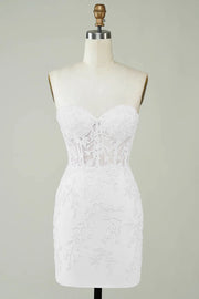 Spaghetti Straps Bodycon Simple White Graduation Dress with Appliques