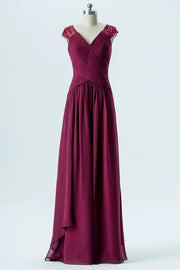 V-Neck Cap Sleeves Long Bridesmaid Dress