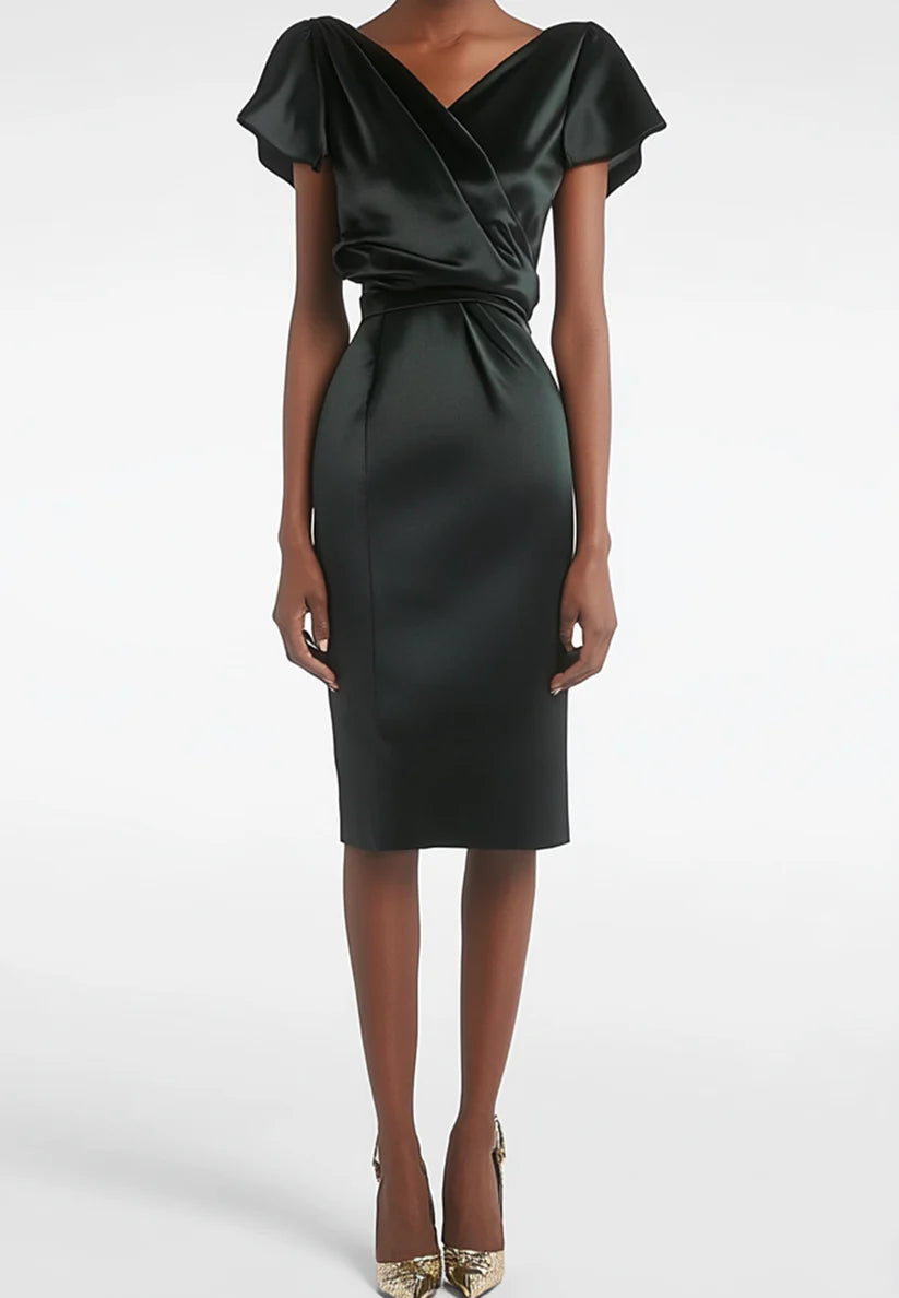 V-Neck Cap Sleeves Wraps Sleek Knee-Length Casual Cocktail Dress simple gentle atmospheric and unique desi Bring summer colors to enhance whiteness - US 2 / UK 6 / EU 32