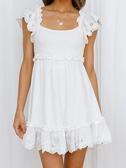 White Lace Ruffles Sweet Short Graduation Dress - US 2 / UK 6 / EU 32