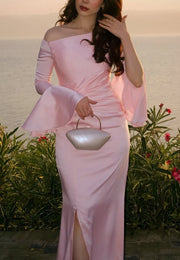 Asymmetrical Long Sleeves Sleek Sheath Formal Dress simple gentle atmospheric and unique desi Bring summer colors to enhance whiteness