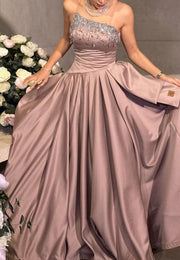 Asymmetrical Sleeveless Beaded Formal Dress Pleated A-Line Evening Dress simple gentle atmospheric and unique desi Bring summer colors to enhance whiteness