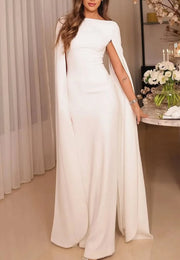 Bateau Long Sleeves Formal Sleek Sheath Evening Dress simple gentle atmospheric and unique desi Bring summer colors to enhance whiteness