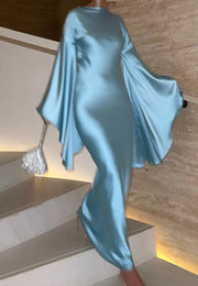 Bateau Long Sleeves Sleek Silk Mermaid Formal Dress simple gentle atmospheric and unique desi Bring summer colors to enhance whiteness - US 2 / UK 6 / EU 32