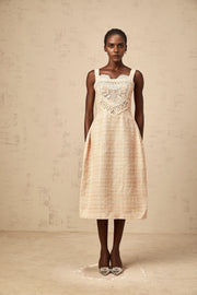 Beige Tweed Embroidered Midi Dress neutrals interwoven embroidered mini dress Evening Dress