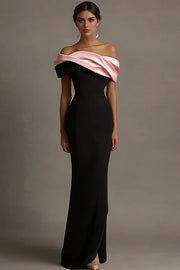 Black and Pink Off - Shoulder Evening Gown Black and Pink Satin Ruffled Off the Shoulder Sheath Long Evening Dress Evening Dress black tie events, formal weddings, and upscale parties