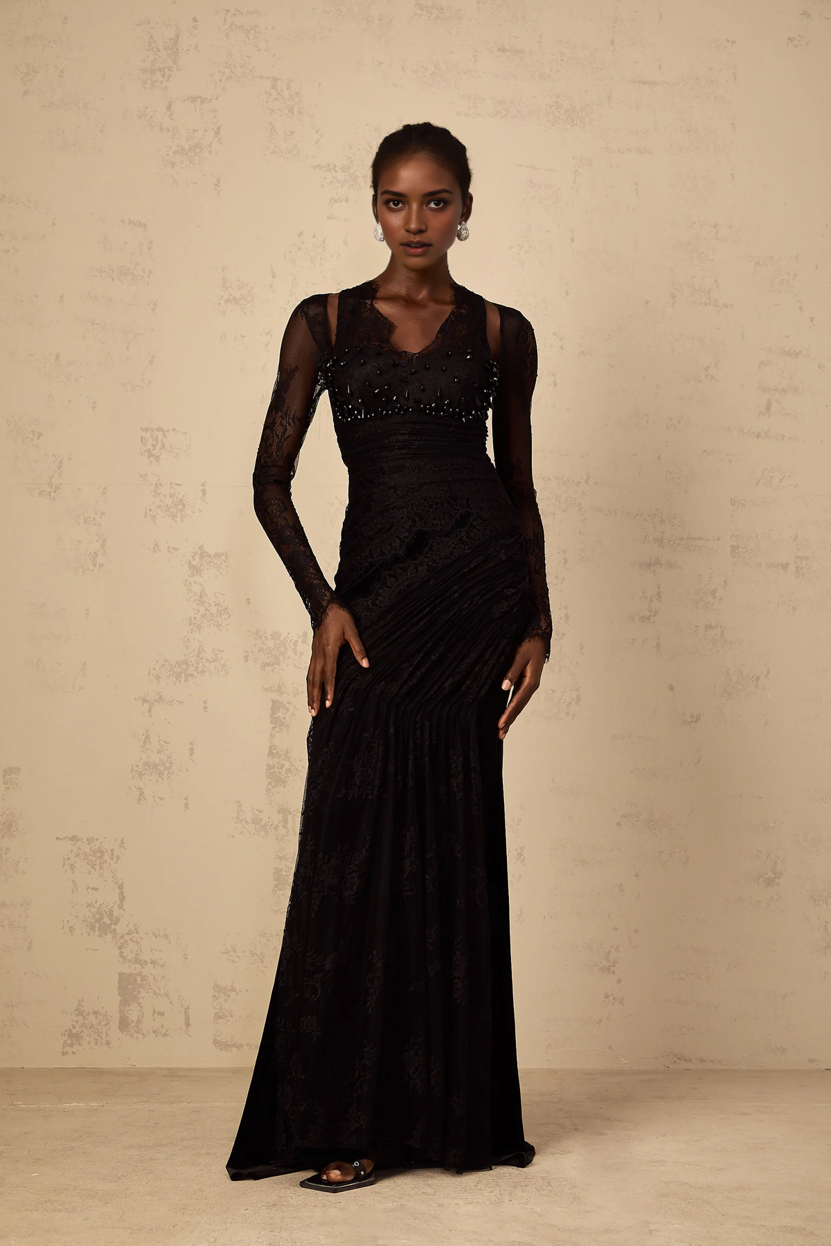 Black Midi Dress with Twisted Strap and Open Back Ursula black floral-lace mermaid maxi dress Evening Dress Prom, black tie events, formal weddings, and upscale parties
