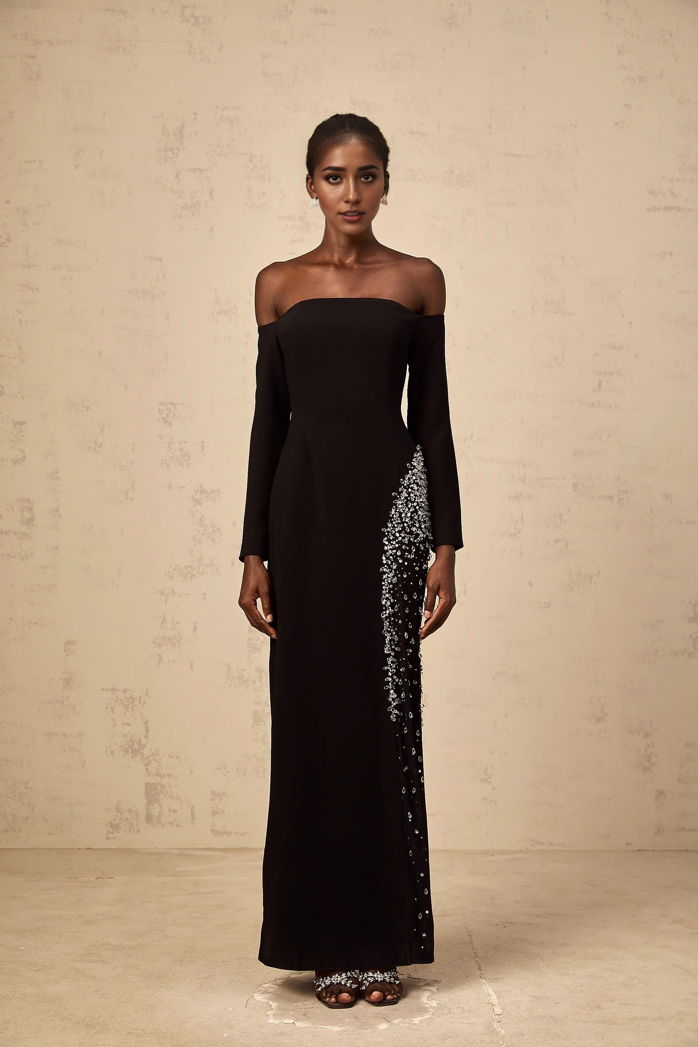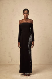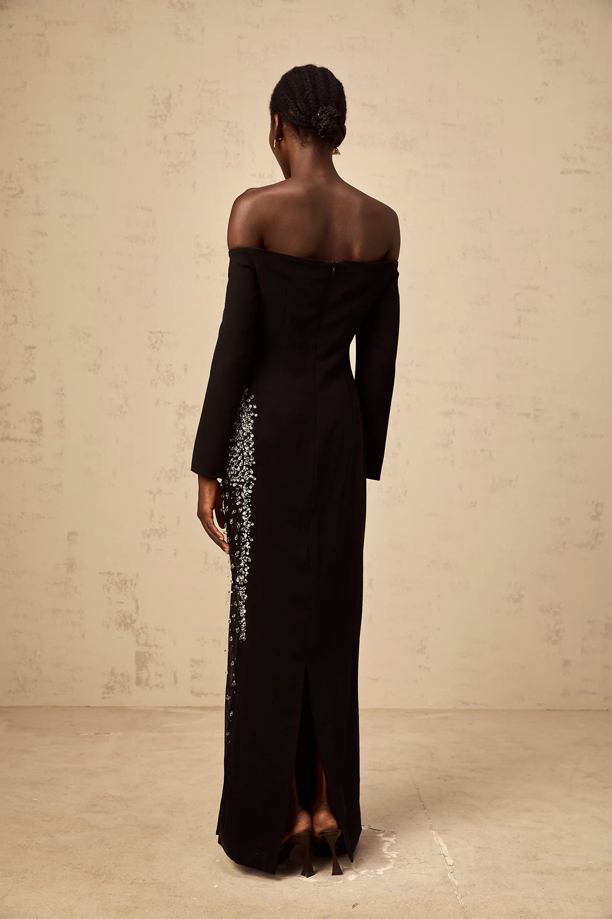 Black Off - Shoulder Sequin Embellished Maxi Dress Hyacinthe black mesh-panel embellished maxi dress Evening Dress - US 2 / UK 6 / EU 32