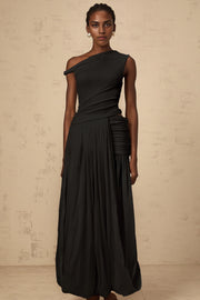 Black One - Shoulder Ruched Maxi Dress mono-shoulder shirred-panel maxi dress in Black Evening Dress