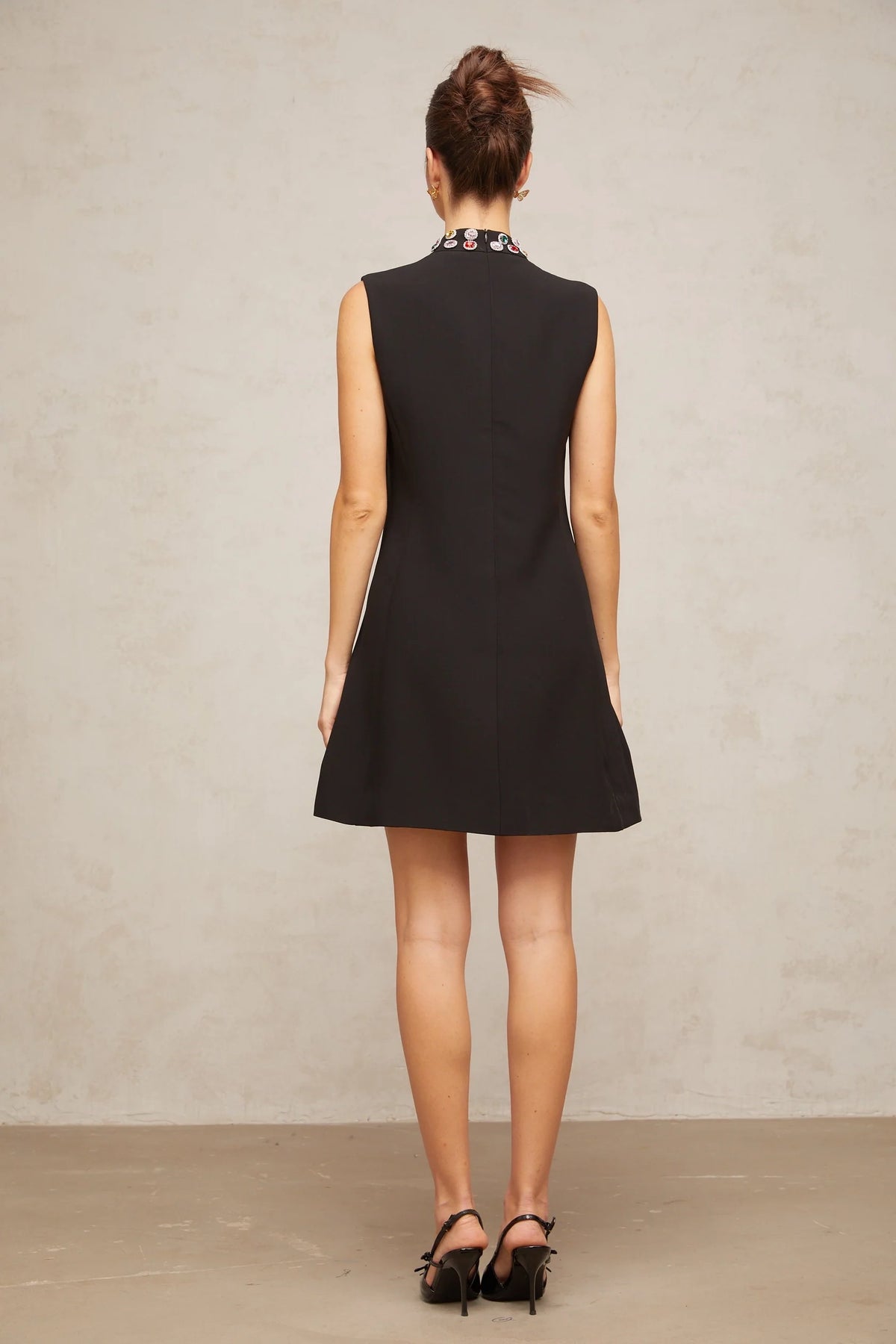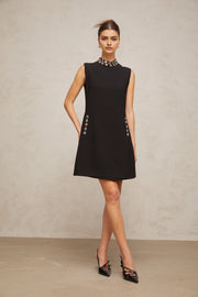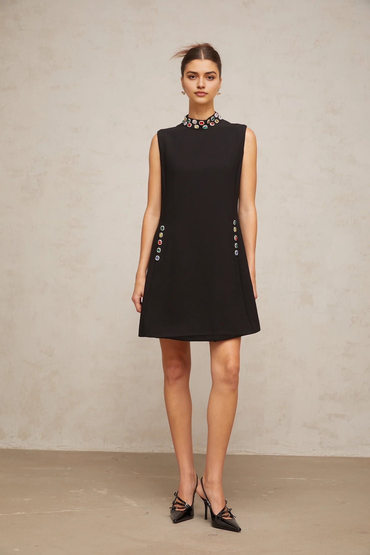 Black Sleeveless Mini Dress with Colorful Jewel Detailing Xanthe crystal-embellished sleeveless mini dress