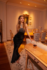 Black Strapless Beaded Mermaid Maxi Dress Aurore Crystal Embellished Maxi Dress Evening Dress Prom, black tie events, formal weddings, and upscale parties