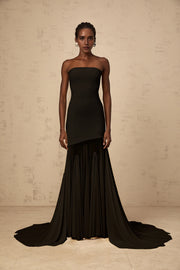Black Strapless High - Low Maxi Dress with Dramatic Train Josiane Black Off-shoulder Sheer Tulle Maxi Dress Evening Dress Prom, black tie events, formal weddings, and upscale parties