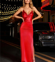 Column Spaghetti Straps Sleeveless Floor-Length Long Evening Dresses with Split Side simple gentle atmospheric and unique desi Bring summer colors to enhance whiteness