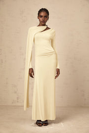 Cream Asymmetric Cape Sleeve Maxi Dress Josette Yellow Diagonal Shawl Fitted Maxi Dress Evening Dress